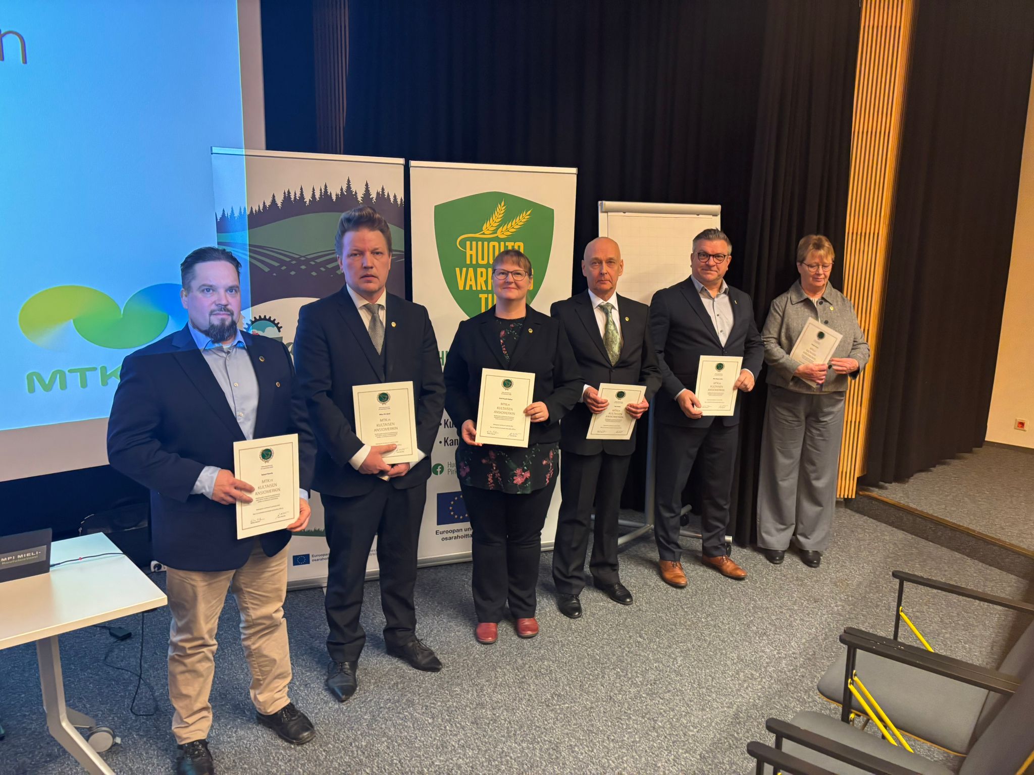 Kokouksessa luovutettiin MTK valtuuskunnan myöntämät kultaiset ansiomerkit seuraaville henkilöille: